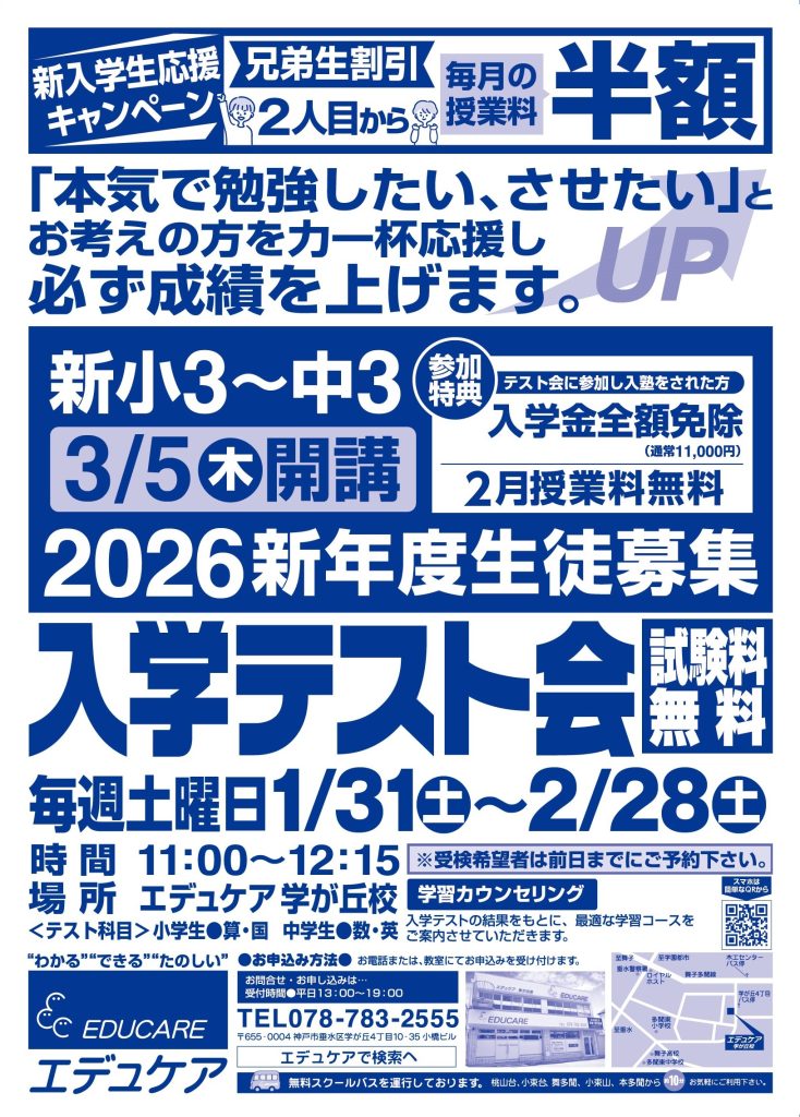 新年度入学テスト会のお知らせ